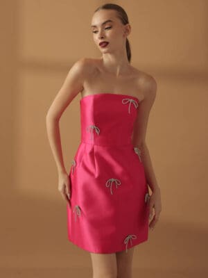 Wine red, sage and cream floral guipure corseted midi dress with bows as straps and pencil cut skirt with sheer detail