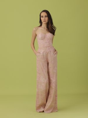 Pink and white floral guipure lace coordinated tube top and pencil cut ankle length skirt with sheer detail