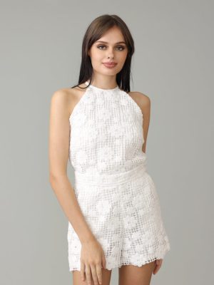 Black floral eyelet coordinate overlap cropped top with trimmings and shorts with scallop details and pockets