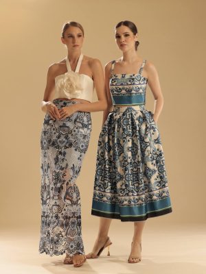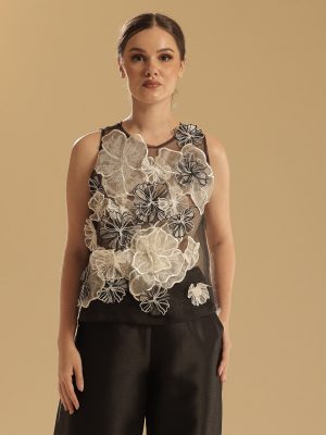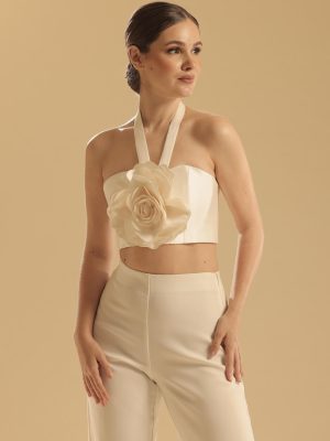 Blush floral silk corseted tube top with spaghetti straps embellished with floral 3D appliques and crystals