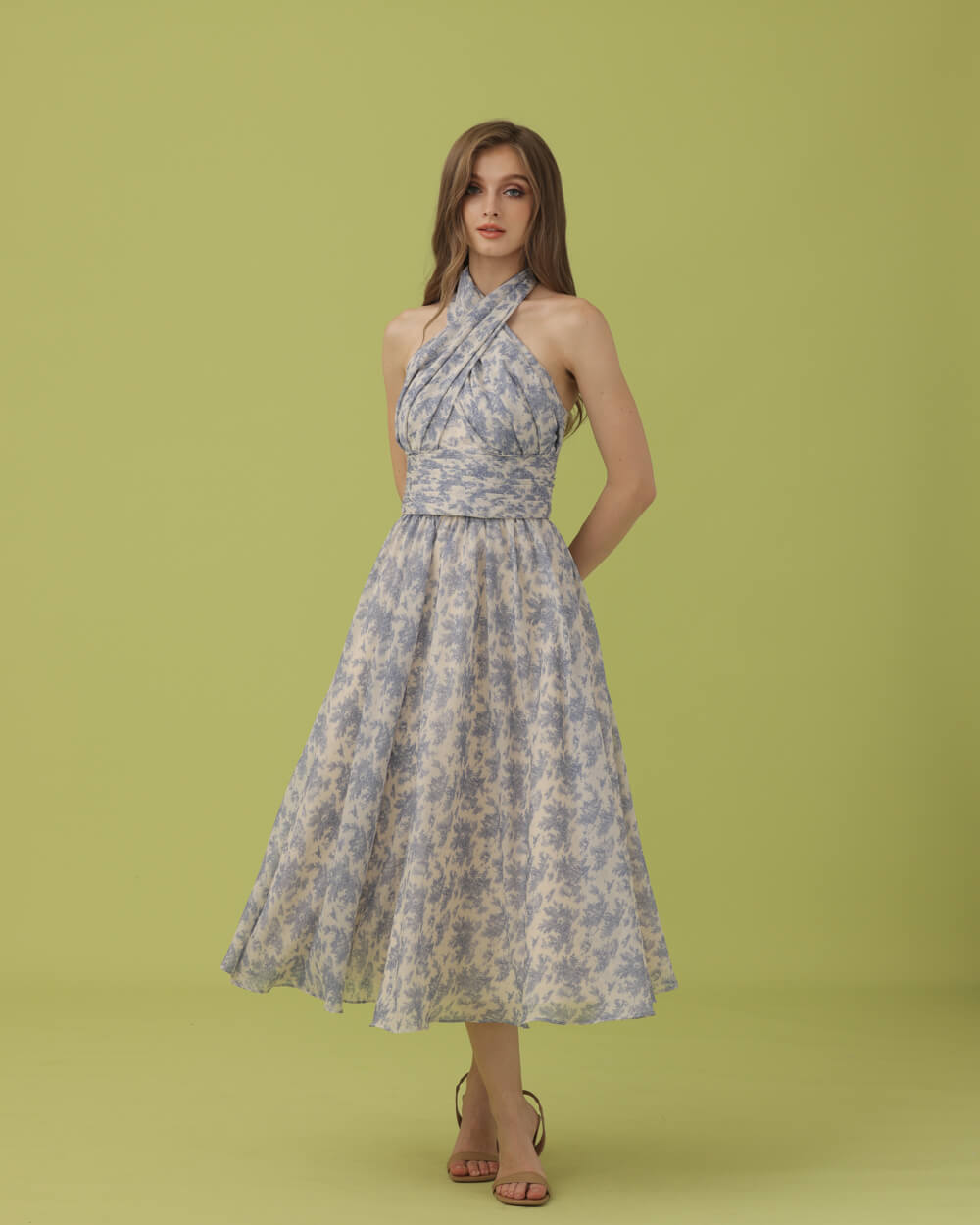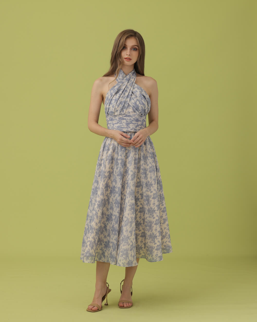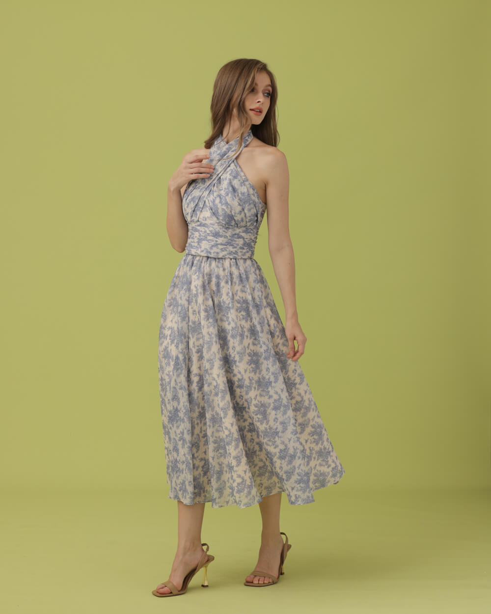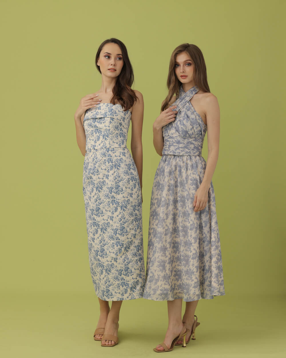 Tags: Bias cut skirt, Blue, Coordinates, Coords, Cream, Halter, Haltered Top, Holiday 2023, Holiday Collection, Midi Skirt, Printed, Toile du Jouy