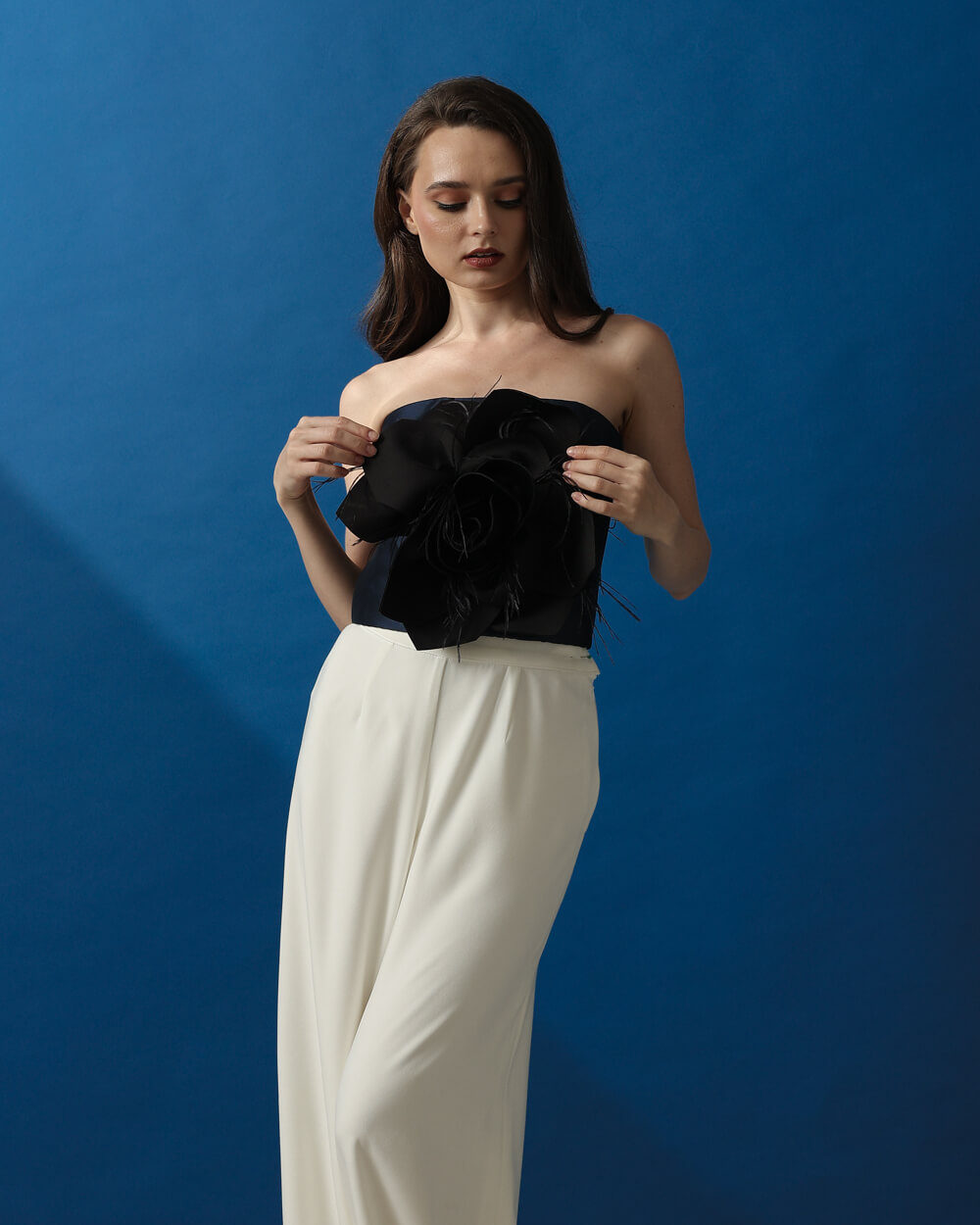 Tags: Black, Bustier, Fall 2024, Fall Collection, Feathers, Floral, Laser Cut, Midnight Blue, Midnight blue top, Tube