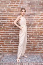 Oatmeal pure linen coordinated halter top and drawstring pants with secret side pockets