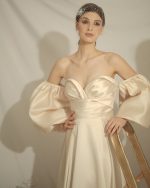 Tags: Cream, Gazar, Gown, Intimate Celebrations, Intimate Wedding, Le Blanc Capsule Two, Long Gown, Pockets, Puff Sleeves, Silk