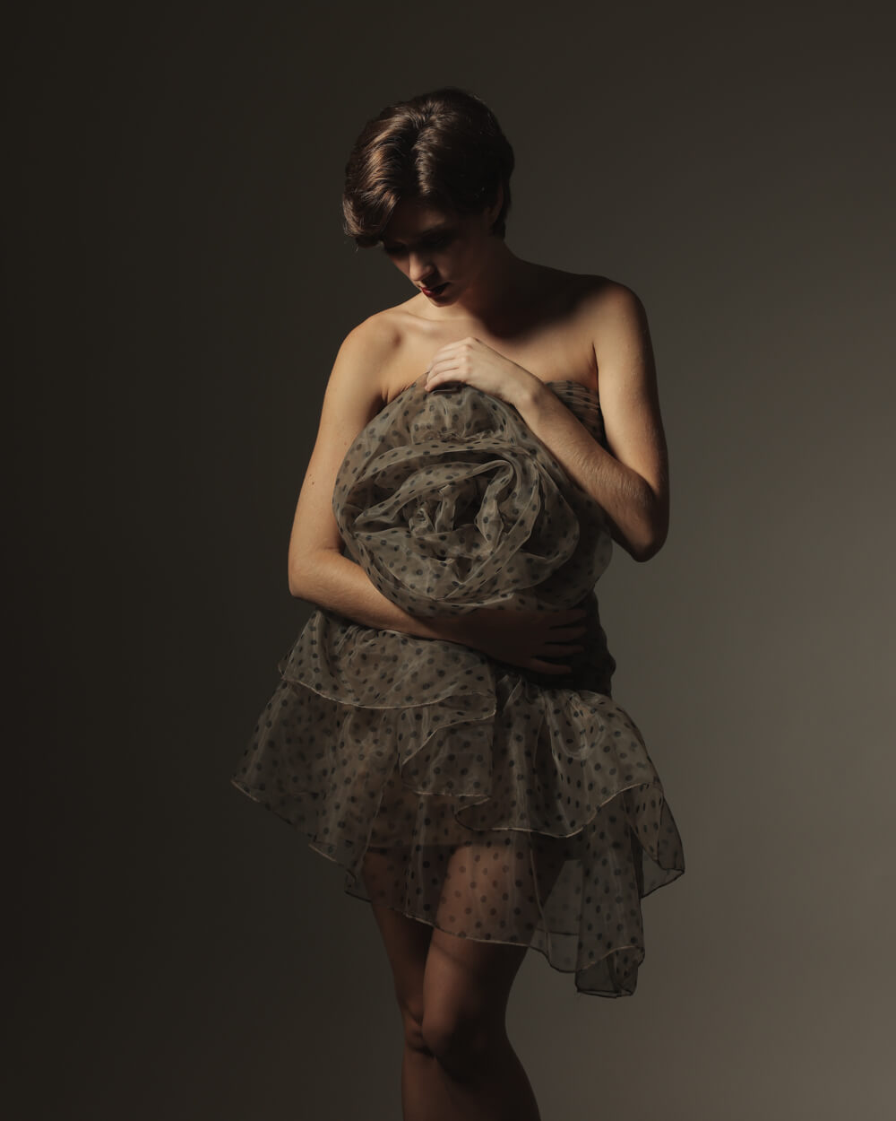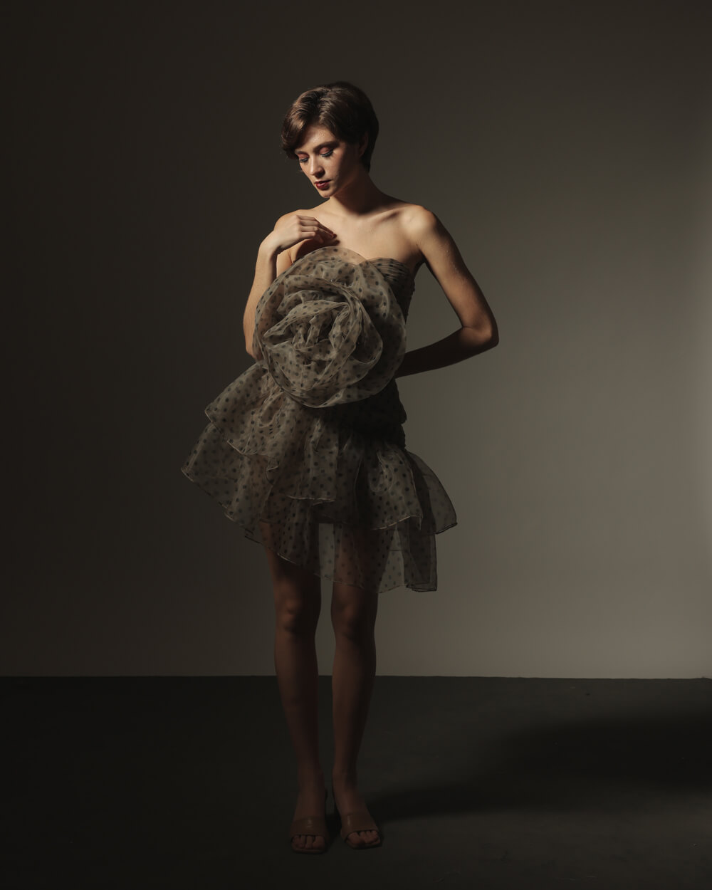 Tags: Brown and black, Bustier, Corset, Holiday Collection, La Fleur, Mini Dress, Polka Dots, Rosette, Silk organdy