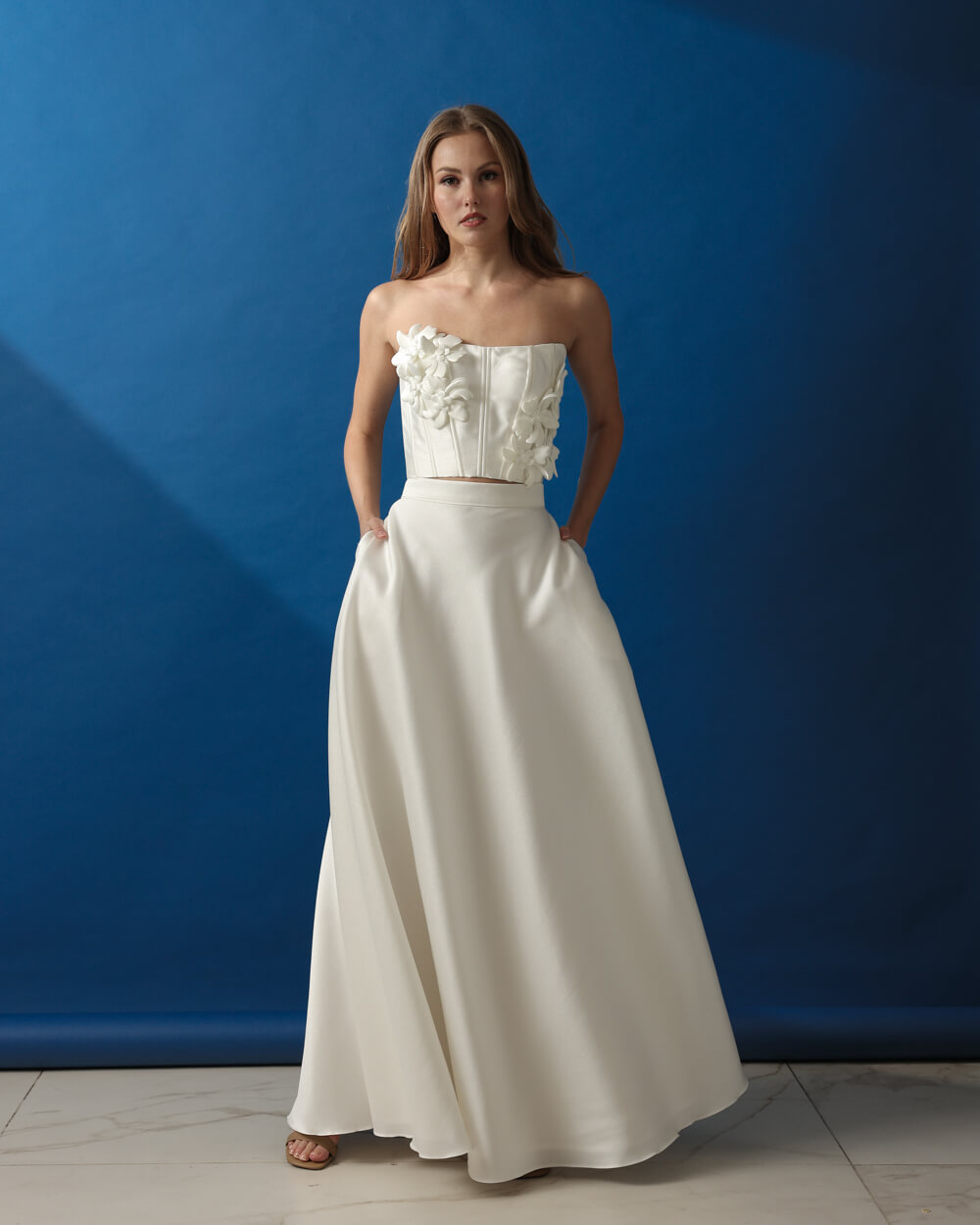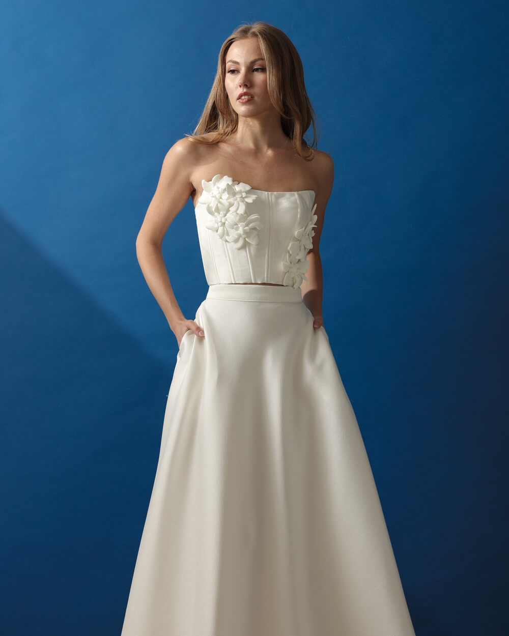 Tags: 3D, Bustier, Corset, Fall 2024, Fall Collection, Floral, Flowers, Statement Top, Tube Top, White Top