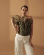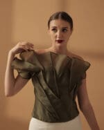 Tags: Bustier, Corset, Fall 2025, Fall Collection, Olive Green, Olive green top, Organdy, Silk, Silk organdy, Statement Top