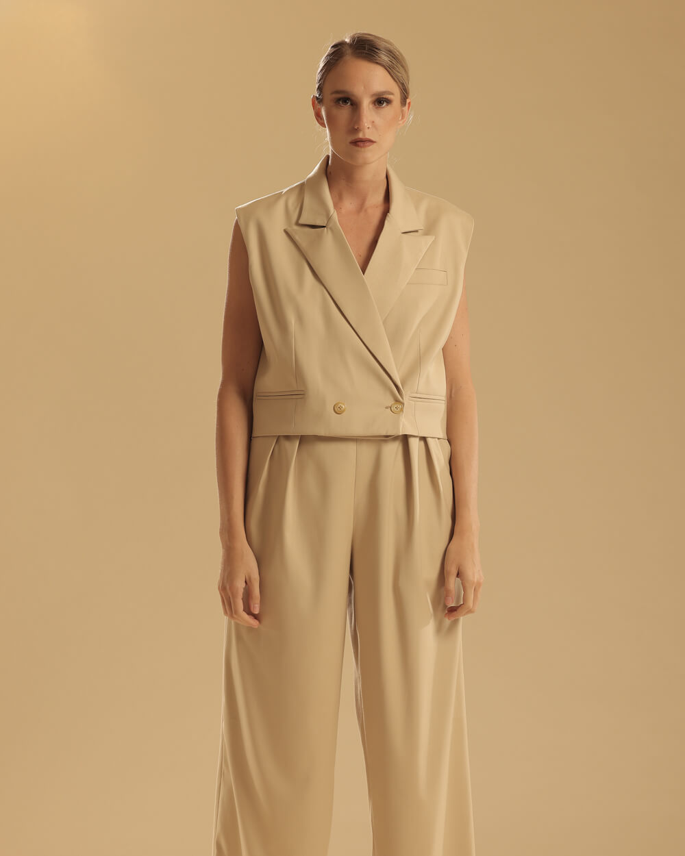 Tags: Coordinates, Coords, Cropped Vest, Spring Summer 2024, SS2024, Tan, Vest, Wide Leg Pants, Wool