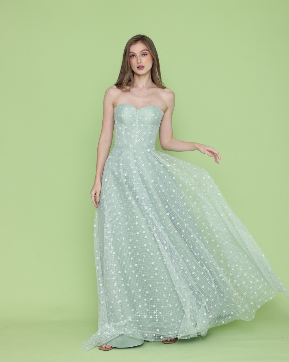 Tags: Bustier, Corset, Floral, Full bias cut skirt, Gown, Long Gown, Mint, Mint gown, Spring Summer 2025, Textured Tulle