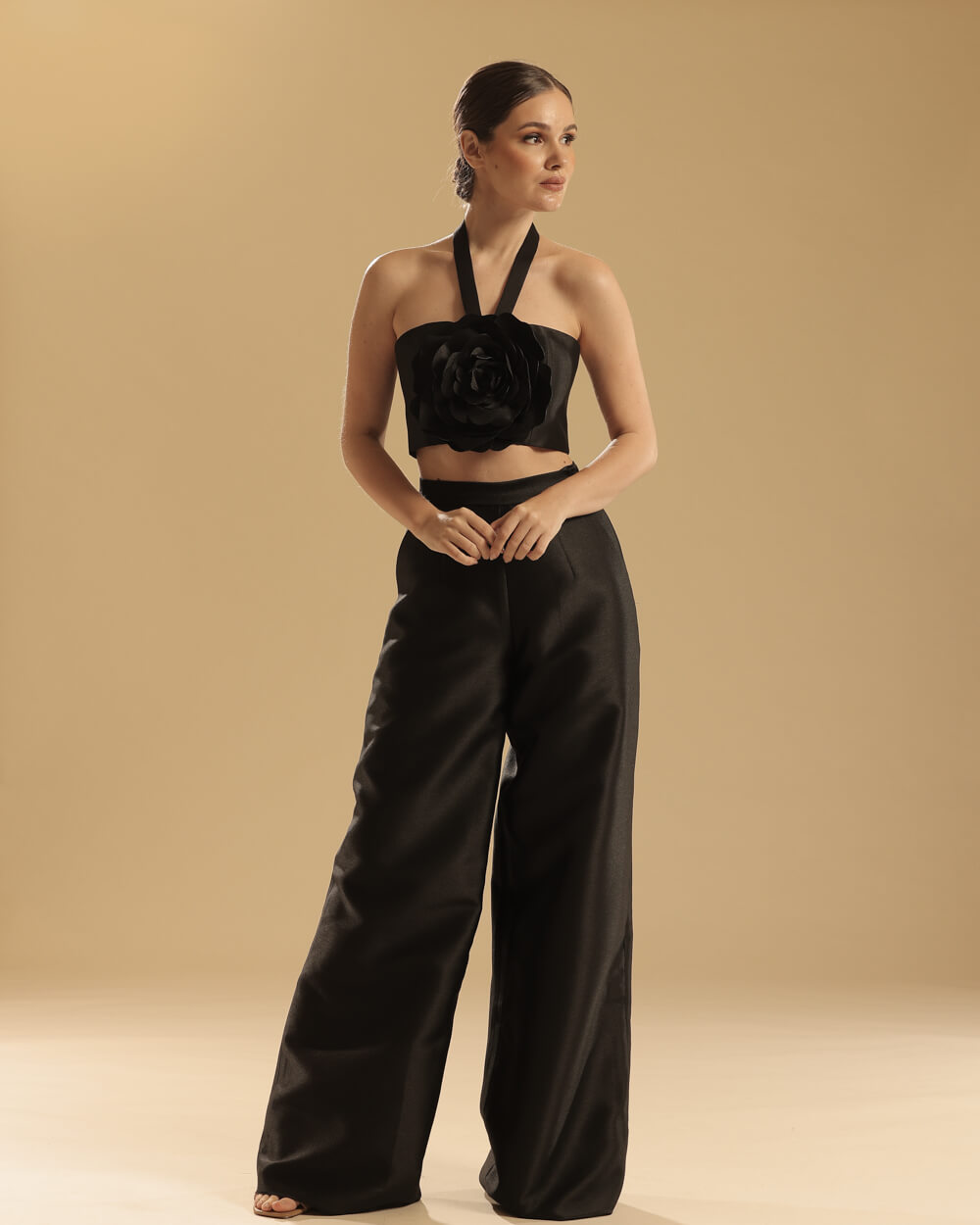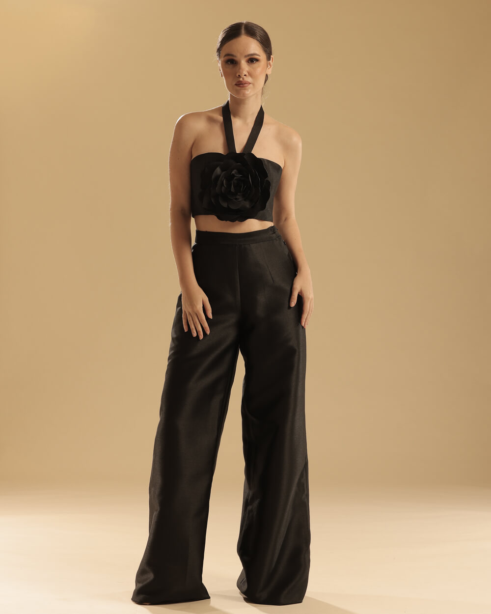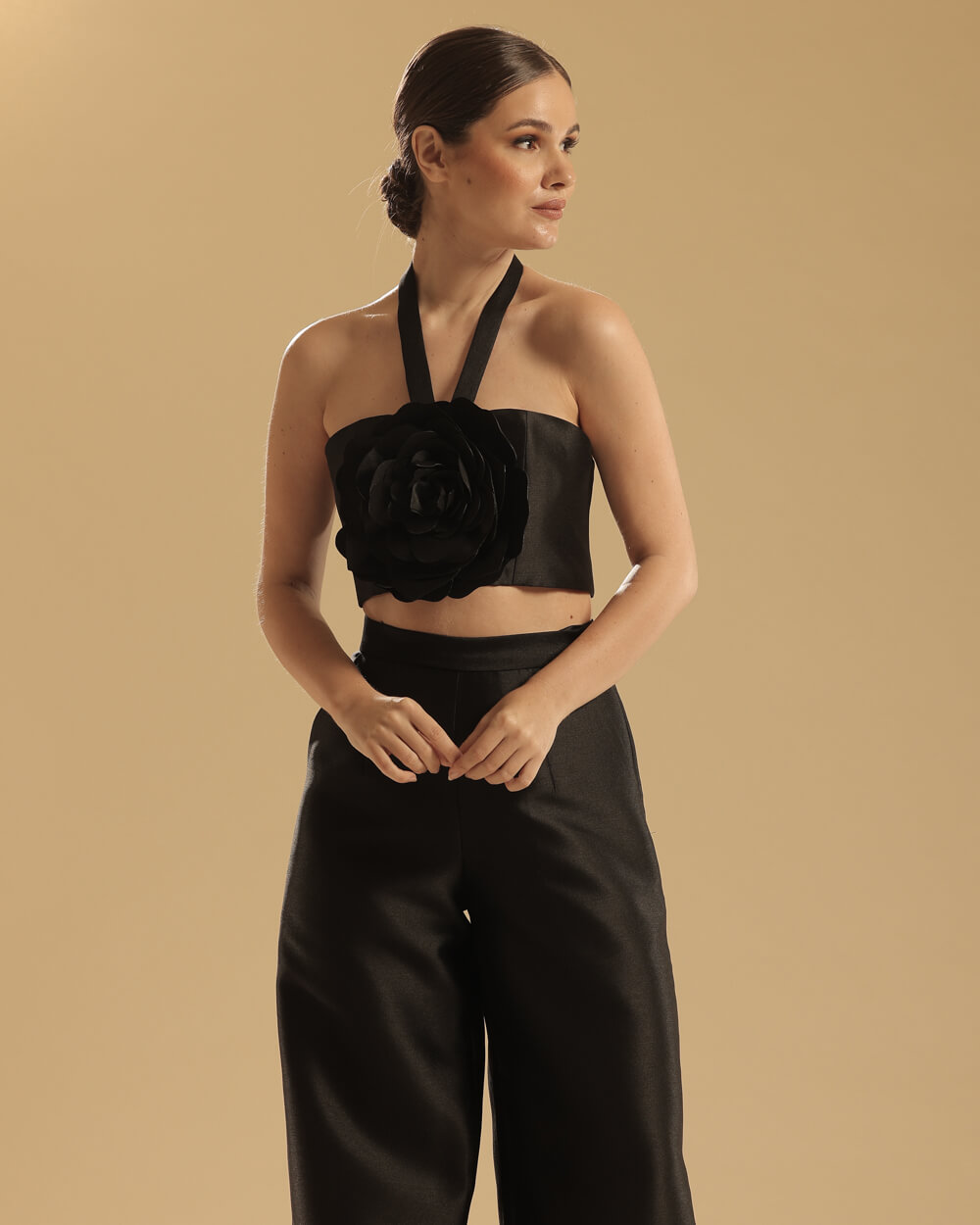Tags: Black, Black Top, Cropped top, Floral, Haltered, Laser Cut, Silk, Spring Summer 2024, SS2024, Statement Top
