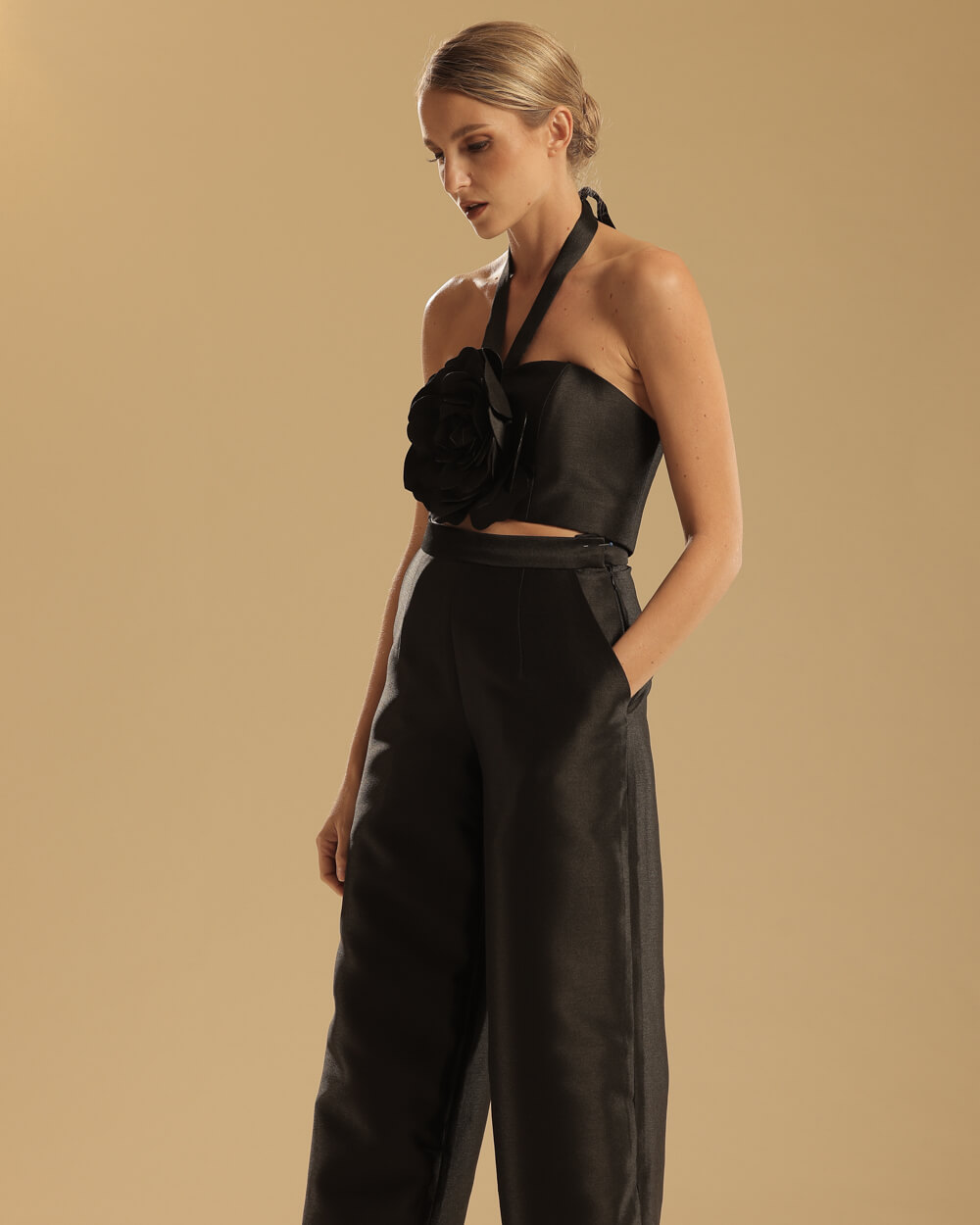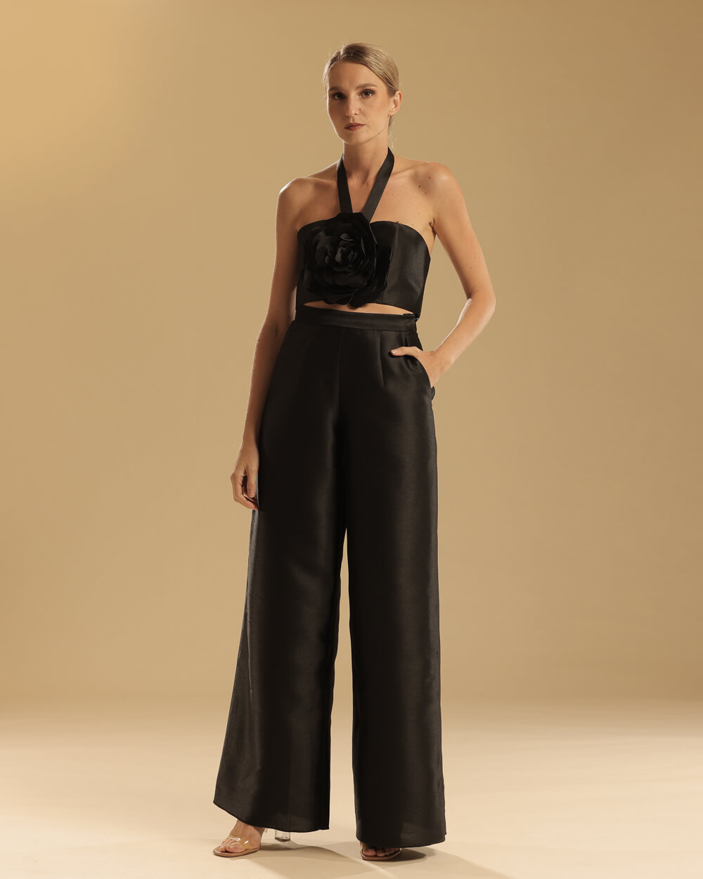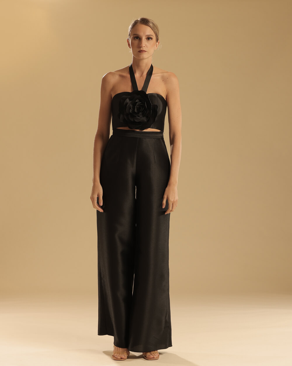 Tags: Black, Black Top, Cropped top, Floral, Haltered, Laser Cut, Silk, Spring Summer 2024, SS2024, Statement Top