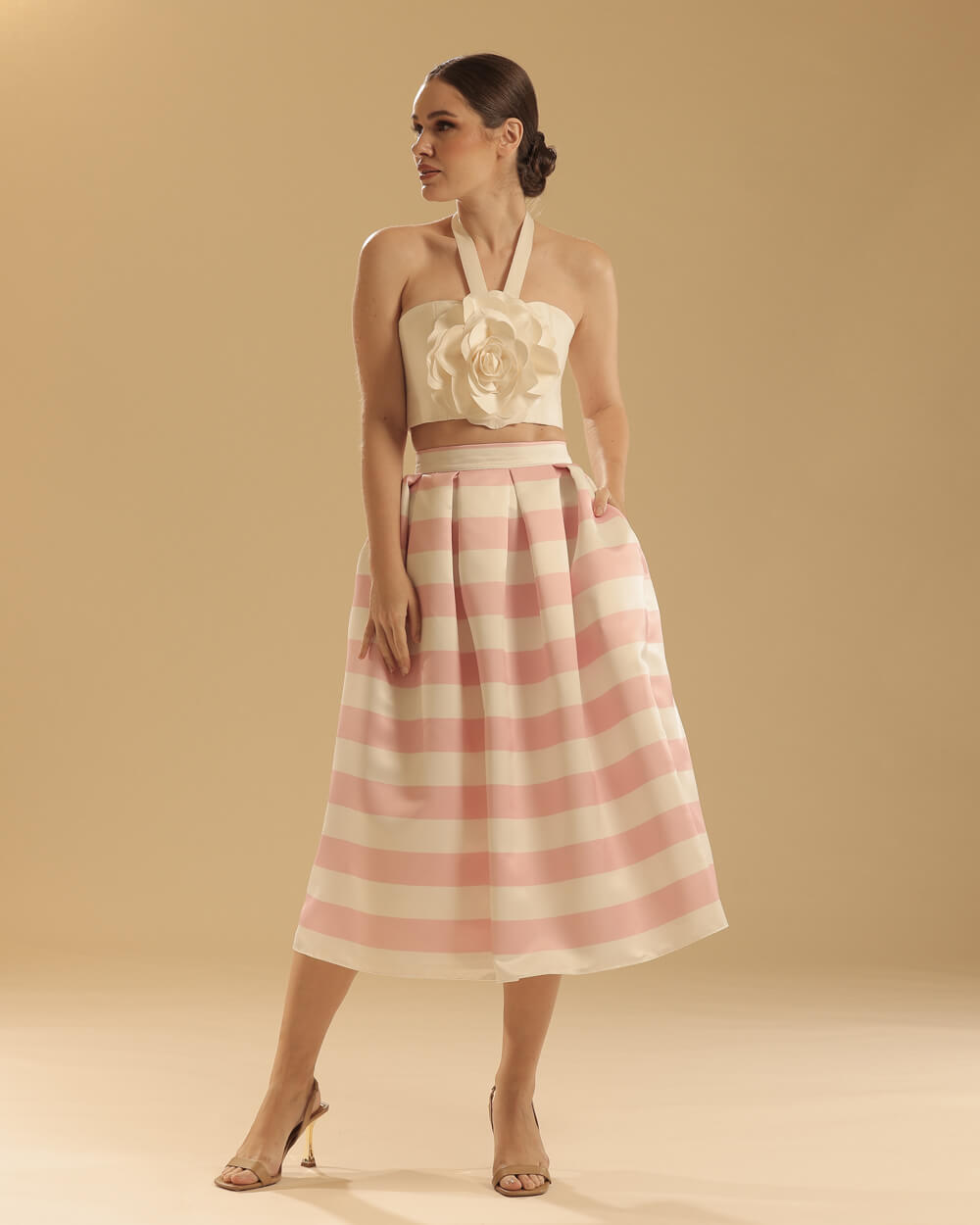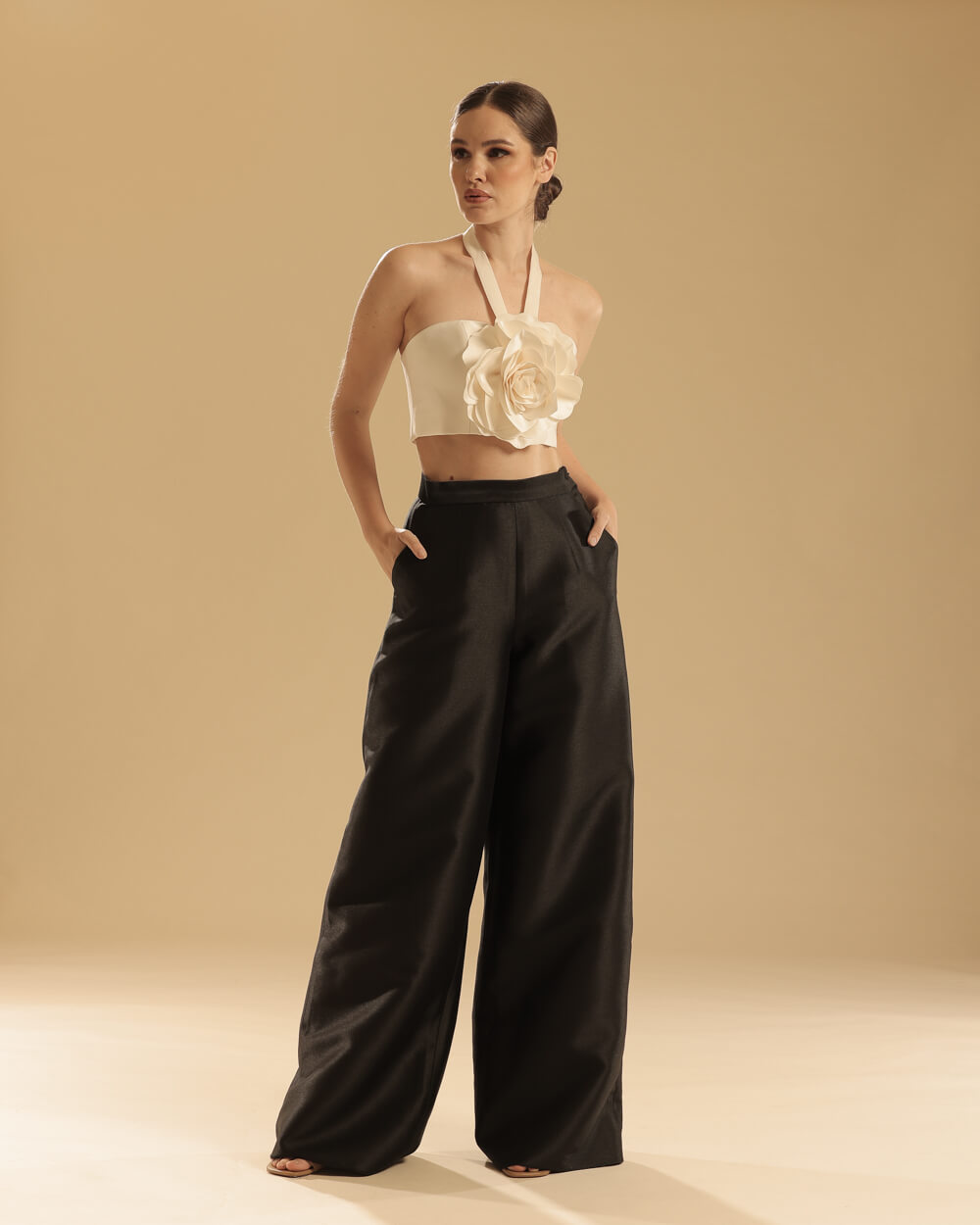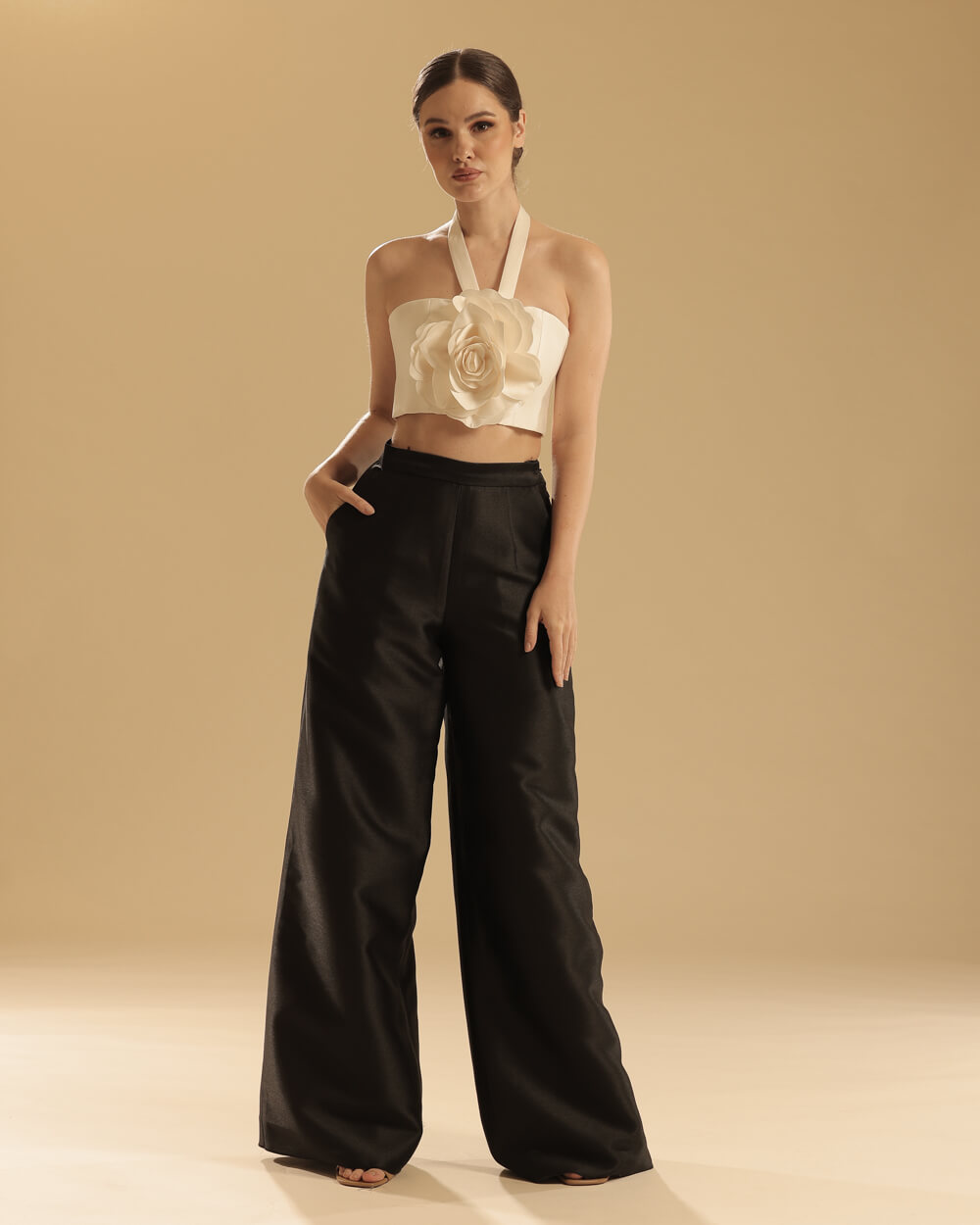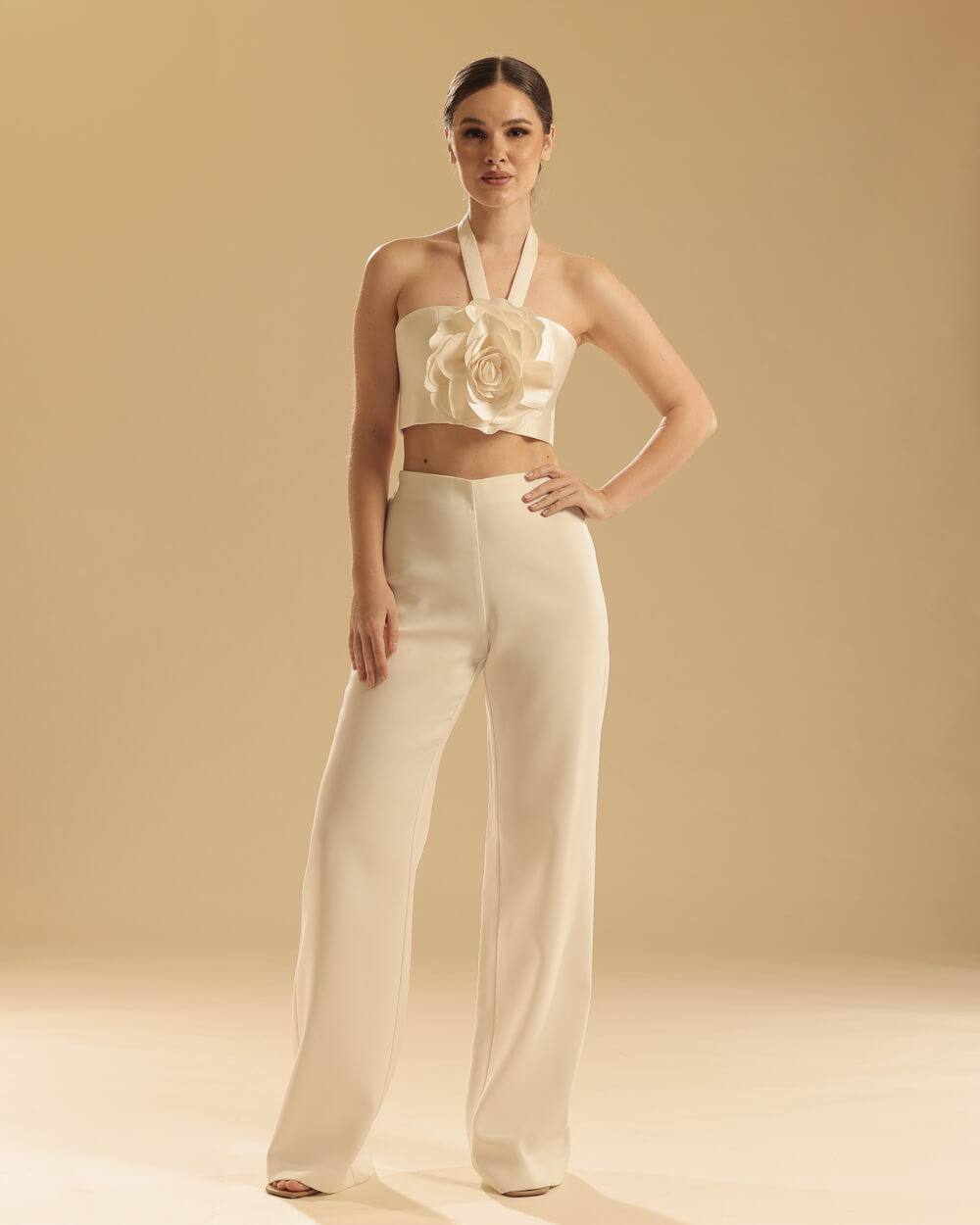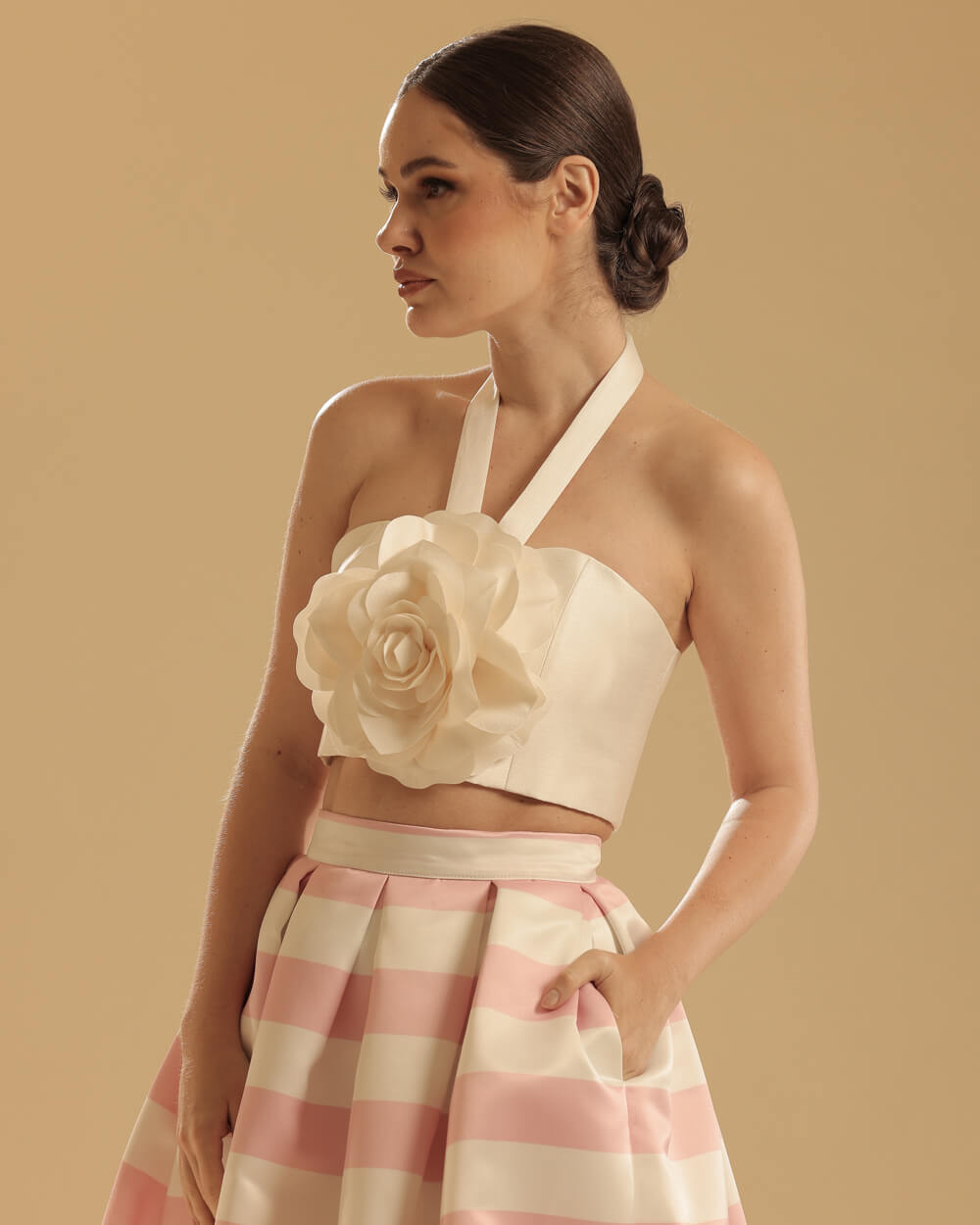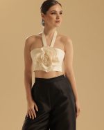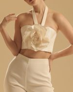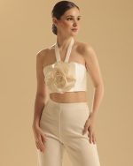 Tags: Cropped top, Floral, Laser Cut, Rosettes, Silk, Spring Summer 2024, SS2024, Statement Top, White Top