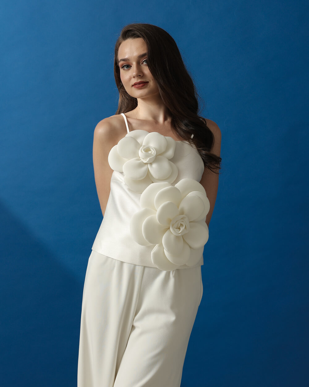 Tags: 3D, Fall 2024, Fall Collection, Floral, Flowers, Silk, Statement Top, White, White Top