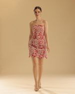 Red and cream floral lace coordinated tube top and A-line mini skirt