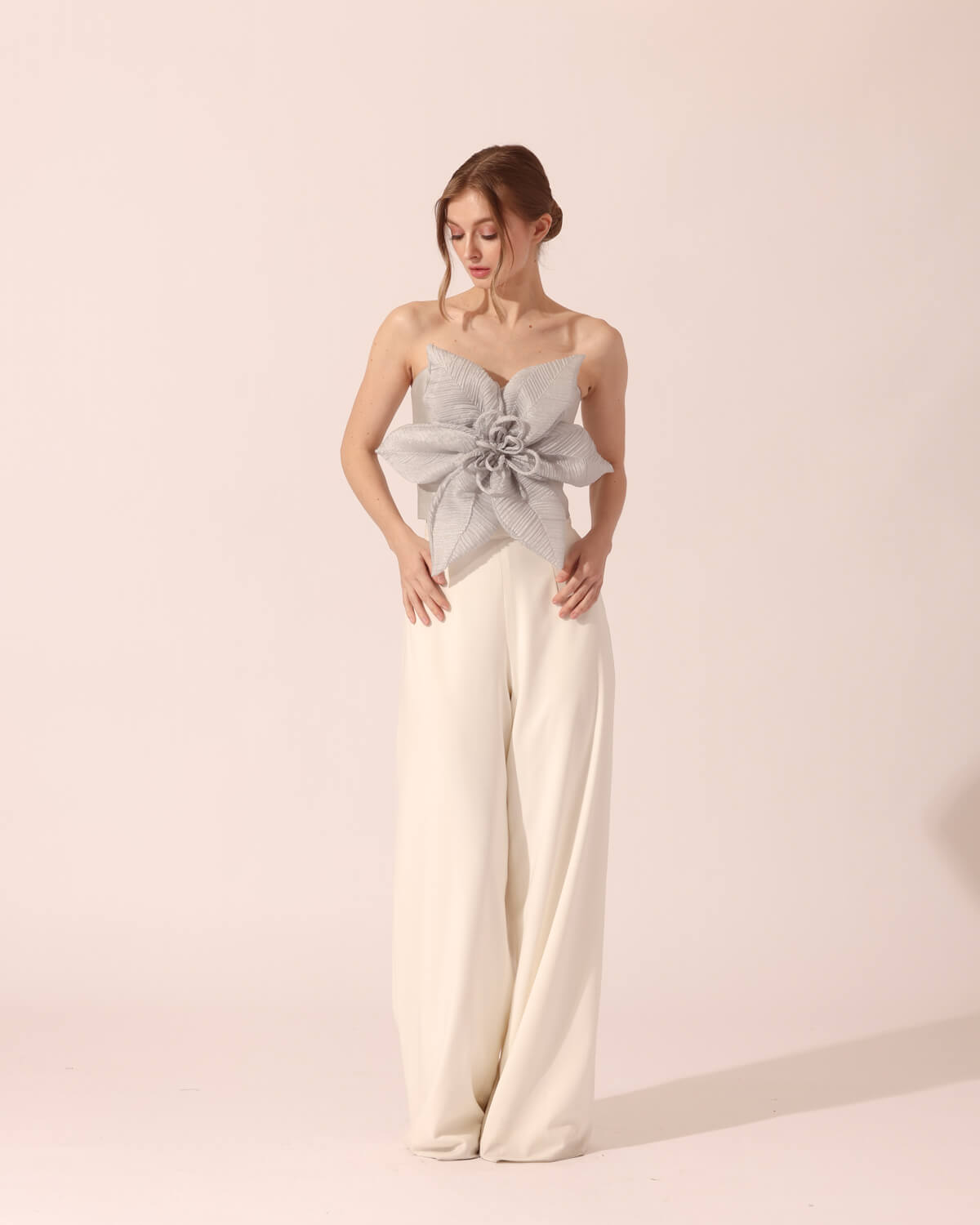 Tags: 3D, Applique, Bustier, Corset, Dove Grey, Electric pleats, Floral, Organdy, Pleats, Silk, Silk organdy, Silver, Silver Top, Spring Summer 2025
