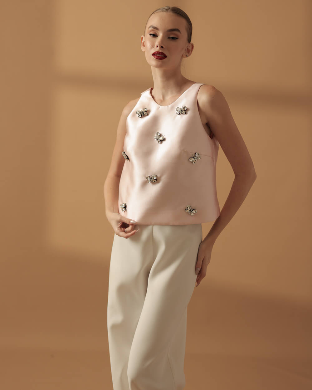 Tags: Blush, Blush Top, Crystals, Embellished, Fall 20225, Fall Collection, Mikado, Mikado Silk, Silk