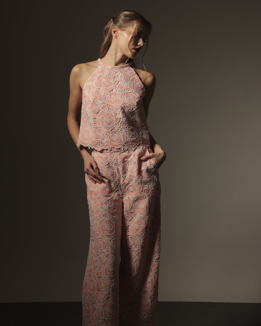 Tags: Coordinates, Coords, Floral, Halter, Haltered Top, Holiday Collection, La Fleur, Lace, Peach, Peach and cream, Trousers