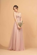 Blush tulle tube gown with off shoulder puff sleeves with bias cut skirt; Floor length; Textured with pearls; With sash and floral appliques.