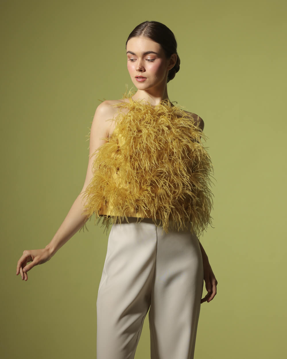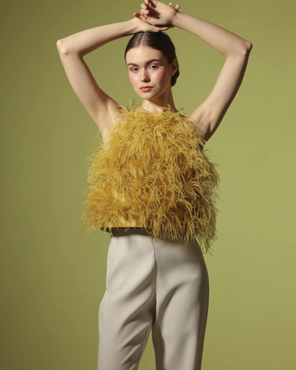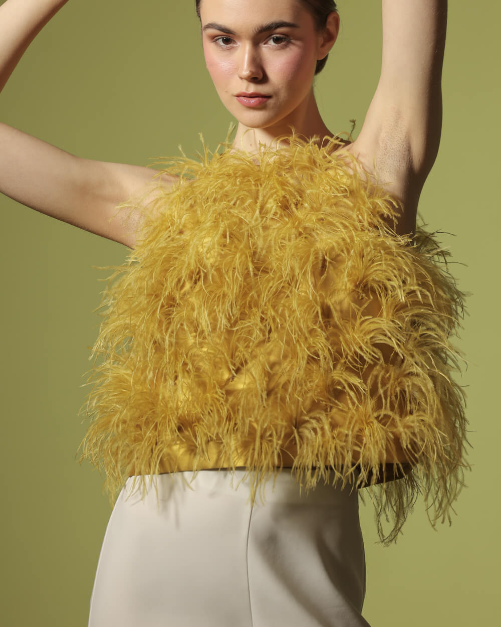 Tags: Feathers, Halter, Haltered Top, Marigold Top, Spring Summer 2026, SS2026, Statement Top