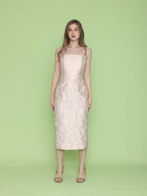 Cream and peach floral tulle corseted ruched bodice with ruffles sleeves and full bias gathered skirt