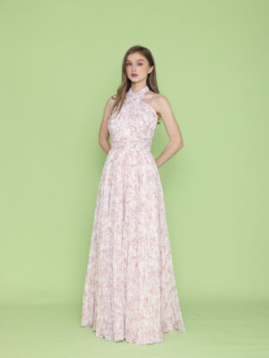 Blush pink silk gazar coordinated embellished top with scoop neckline and bow details and straight cut pants
