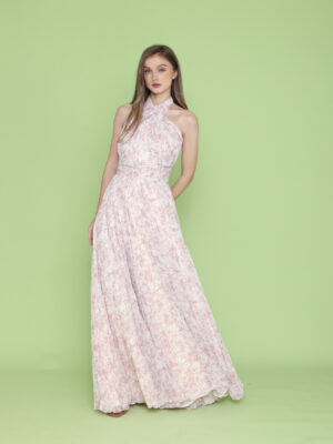 Mint green floral silk brocade corseted bustier drop waist midi dress with bias gathered skirt embellished with 3d floral lacec appliques
