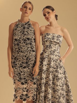 Jim Thompson Toile du Jouy print in black and cream coordinates in a halter top with scallop details and shorts with pockets