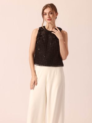 Black Mikado silk coordinated corseted bustier top with sheer detail and gold floral accent and A-line mini skirt