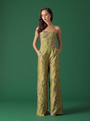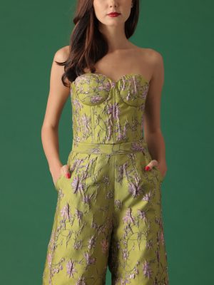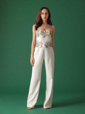 White floral lace coordinated cropped tube top and full bias floor length skirt with secret side pockets