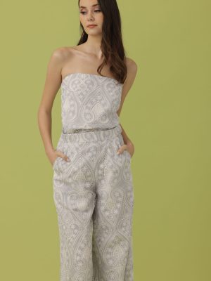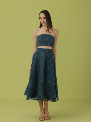 Pink and white floral guipure lace coordinated tube top and pencil cut ankle length skirt with sheer detail