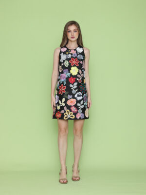 Dusty pink eyelet ruffled top with sleeve embellished with 3d floral lace appliques and with bow detail at the back