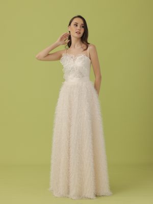Peach silk bias cut skirt tulle floor length skirt embellished with 3d floral appliques in silk organdy