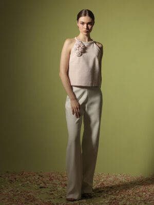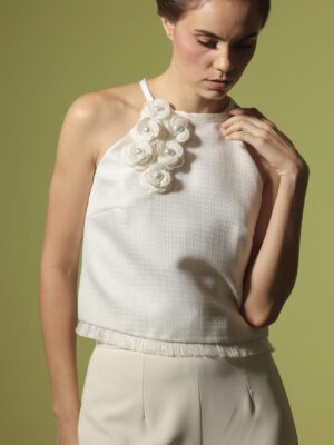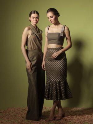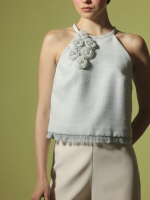 Periwinkle floral silk brocade corseted bustier structured drop waist midi dress with gathered bubble skirt