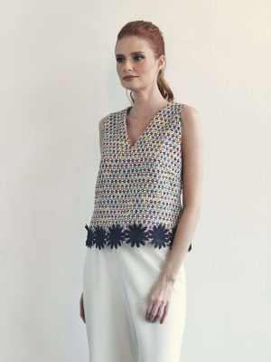 Lilac floral silk brocade tea length dress with v neckline, spaghetti straps, bias cut skirt and secret side pockets